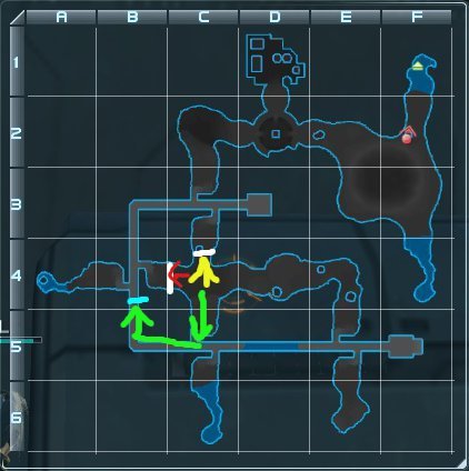 C-4の敵を駆逐したら緑と黄色の人矢印のように別れます。