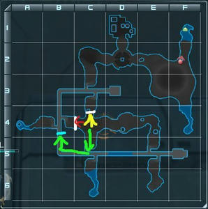 緑の人はB-4の青いフェンスに触るorそこを通り過ぎるとC-4に出てくる白フェンスが全部解除されて出てこなくなります。(青フェンスを解除した場合はB-4からC-4に戻ってそのまま北に進めますが敵が出て来てC-2のスイッチ解除を邪魔することもあるので適当に足止めなり倒すなりすると良い)